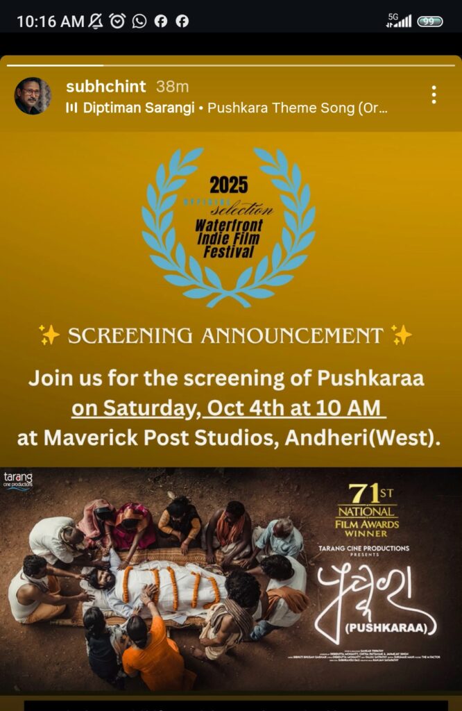 Mumbai: Fresh from its historic win at the 71st National Film Awards, where it was named Best Odia Feature Film, Pushkara will be screened at the Waterfront Indie Film Festival in Mumbai. The special showcase is scheduled for Saturday, October 4th, at 10 AM.