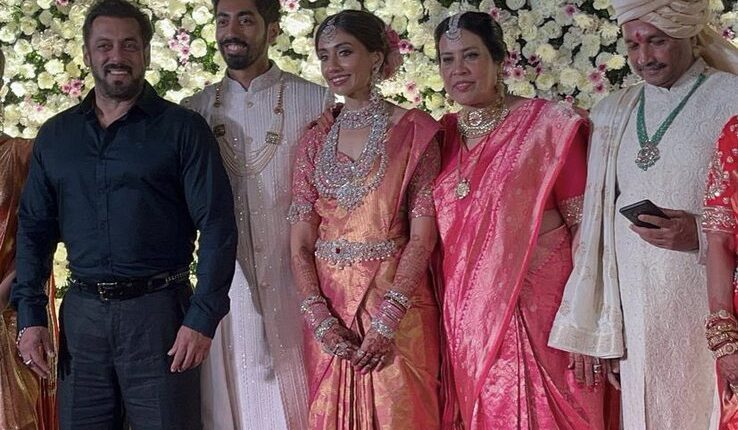 In the picture, Salman can be seen sporting an all black look. He wore a full sleeved shirt with matching pair of pants in the picture. The groom, Pooja’s brother Rishabh wore a white sherwani with matching necklace while the bride, Rishabh’s wife, Shivani wore an orange silk saree with heavy jewellery. She wore a white glittering maang tikka and kamarbanth with bangles. Pooja’s father Manjunath wore an off white kurta with pyjama.